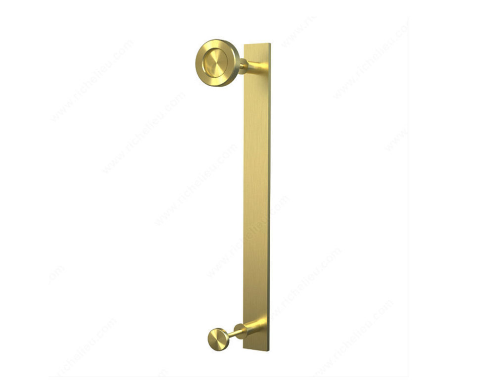 Wall mounted track and hardware Essentials Combined pull and knob: flat bar on one side with a flat disc on the other. Screws for two door thicknesses: 35-45 mm and 45-55 mm